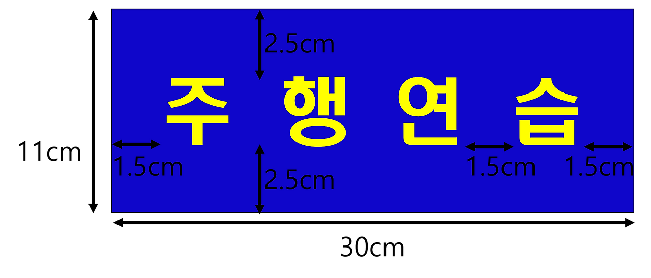 - 글씨: “주행연습 중”이라고 쓰며, 글자 크기는 6cm이다.